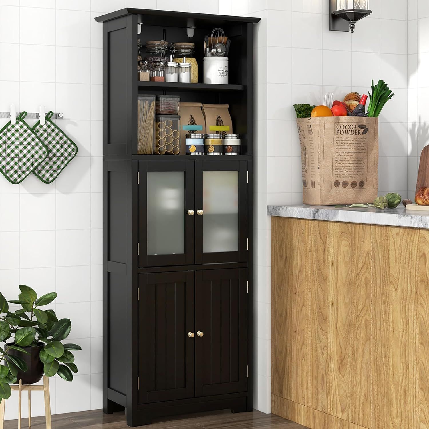 Customize Storage Solution: Behind the upper doors, you can find a 3-position adjustable shelf (3.2cm as the increment). Similarly, another 3-level adjustable shelf (6.4cm as the increment) hides behind the lower doors. Hence, you are capable of altering the position of shelves to fit items of varying heights. Arrange Bathroom Necessities: The bathroom storage cabinet provides ample room for your bathroom essentials. Thus, you are able to get what you need quickly after every shower. The minimalist style with white color matches your bathroom and coordinates with other furniture well. Enjoy Years of Service: Crafted from high quality material, the kitchen pantry cupboard aims to serve you for a longer time. The frosted tempered glass combines visibility with aesthetics, displaying objects behind the doors. With 2 included anti-toppling kits, you and your family can live in a secure environment. Find Unlimited Possibilities: Just in the bathroom? Definitely not! Placing it in the kitchen, you can neaten all kitchenware. Putting it in the living room, you can have those beautiful decorations displayed. Appearing in the study, books and magazines will find a home. More uses are waiting for you to find out. Assemble & Clean at Ease: Get instruction by your hand during installation and check out all required parts before installation. So, you can install this freestanding bathroom storage cabinet easier. When it comes to daily cleaning, the painted smooth surface offers great convenience. Note: ALWAYS secure this furniture with the anchor device provided Never allow children to stand, climb or hang on drawers, doors, or shelves
